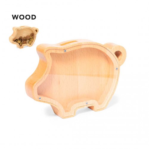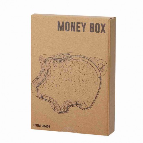 Um charmoso cofrinho com a silhueta de um porquinho, combinando design e funcionalidade para tornar a economia uma experiência alegre, enquanto você vê sua renda crescer através de sua janela de acrílico. Apresentado individualmente em uma caixa de design kraft. Madeira.