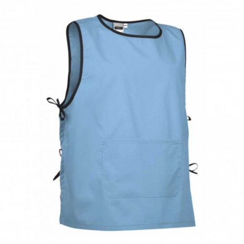 65% poliéster, 35% algodão. Tecido popelina 120 grs/m2. Laterais com fitas reguláveis. Bolso inferior. Disponível em tamanho grande - preços sob consulta.