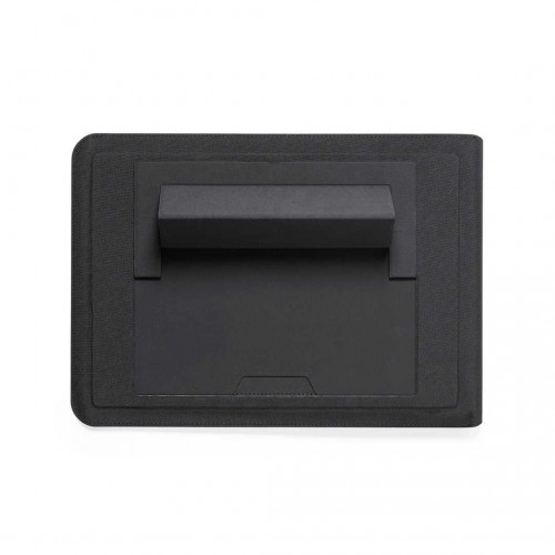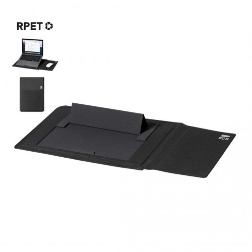 Gabinete para computador feito de poliéster 600D RPET, feito de plástico reciclado, para incentivar a reutilização de resíduos plásticos e contribuir para a sustentabilidade do planeta. Com fecho magnético e emblema RPET. Interior dobrável com mouse pad e suporte inclinado para computador. Apresentado em uma caixa de designer individual. Poliéster 600D RPET.