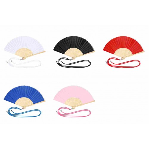 Ventilador feito de tecido resistente de poliéster 190T e hastes flexíveis de bambu. Inclui um cordão ajustável combinando com o tecido e um prático mosquetão de metal para fácil transporte. Materiais como o bambu promovem o uso de matérias-primas naturais, reduzindo as emissões poluentes. Além disso, o bambu vem de uma planta altamente resistente e versátil, com rápido crescimento e regeneração, o que o torna uma excelente alternativa ao uso da madeira tradicional. Bambu/ Poliéster.