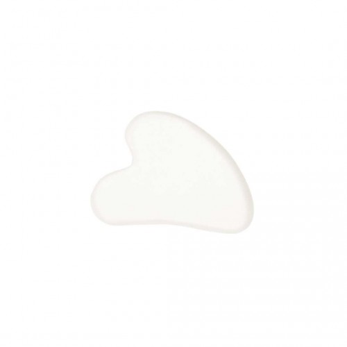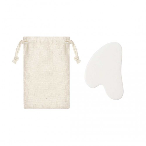 Massageador facial feito de pedra jade branca. É ideal para complementar rotinas de cuidados faciais. Apresentado em bolsa de algodão natural. Capa de algodão. Pedra de Jade Branca.