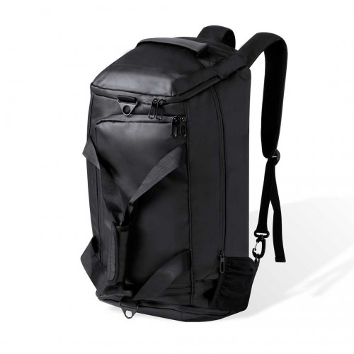 Mochila feita de couro sintético durável e macio. Seu compartimento central fecha com zíper duplo. Além disso, possui um bolso lateral independente e outro na outra extremidade, ambos com fecho em zíper; e na base uma especialmente desenhada para calçados. Inclui também um bolso externo de malha. Oferece três opções de transporte: como mochila, graças às alças acolchoadas e dobráveis; como uma bolsa; ou como uma bolsa de ombro graças à sua alça ajustável. Os zíperes ficam discretamente escondidos para um design mais elegante. Apresentado em bolsa individual. Costas e alças acolchoadas. Compartimento para sapatos. PU.