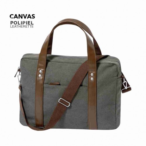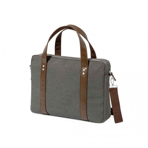 Porta-documentos transversal com design atemporal, feito de lona cinza durável de 475 g/m2, com alças de couro sintético e uma prática alça de ombro ajustável. Interior acolchoado com compartimento para laptop de até 15 polegadas. Inclui bolso prático na parte externa. Apresentado em saco individual reciclado, Acolchoado. Bolso acolchoado para laptop. PU/Lona 480 g/m2