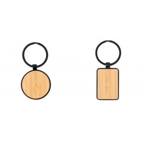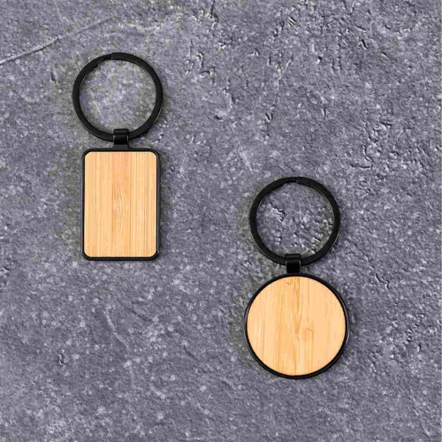 Chaveiro em combinação de bambu e metal. Com área de acabamento em borracha, ideal para gravação a laser com acabamento prateado efeito espelho. Materiais como o bambu promovem o uso de matérias-primas naturais, reduzindo as emissões poluentes. Provém de uma planta de grande resistência e versatilidade, com rápido crescimento e regeneração, sendo uma excelente alternativa ao uso da madeira tradicional. Metal/Bambu.