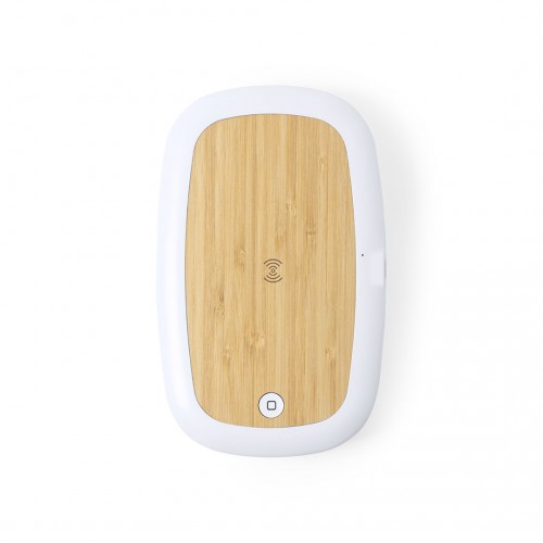 Caixa esterilizadora de linha nature, com base de carga em bambu. Luz ultravioleta tipo C, com carregador sem fios de 5W para smartphone integrado na tampa. Especialmente projetada para a eliminação de microorganismos e bactérias em objetos do quotidiano como o smartphone, chaves, óculos, máscara, auriculares, smartwatch ... Fabricada em material ABS resistente com acabamento mate e apresentada numa atrativa caixa de design individual.