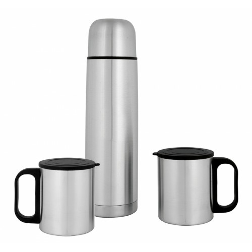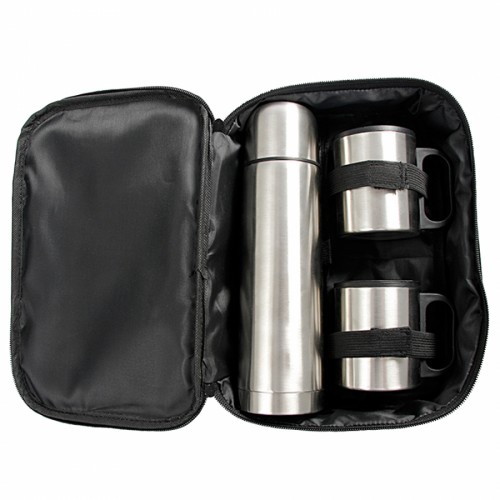 - Aço Inoxidável - Dimensões - Termos: 7x24cm - Canecas: 7x8 cm - Estojo: 27x7x18 cm