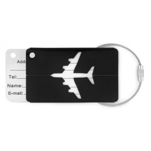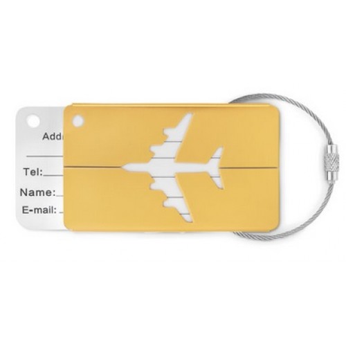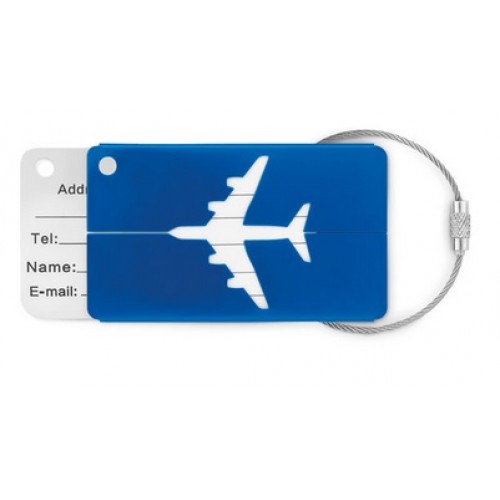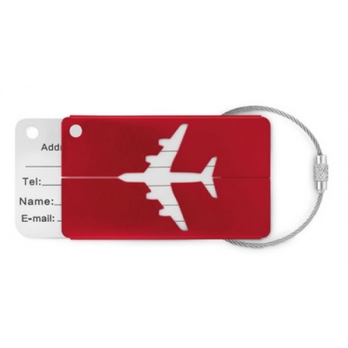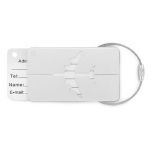 Identificador de bagagem em alumínio. Inclui etiqueta para nome e morada e cordão.