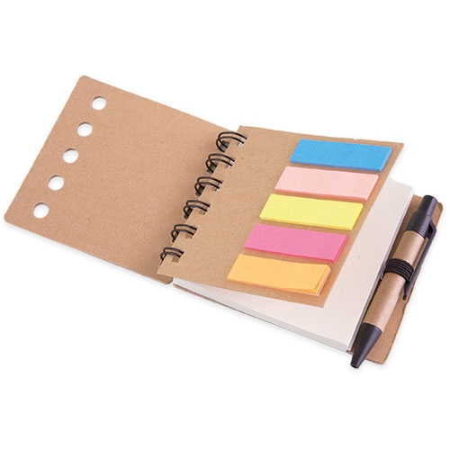 Inclui: bloco de 70 folhas, marcadores adesivos em 5 cores e esferográfica