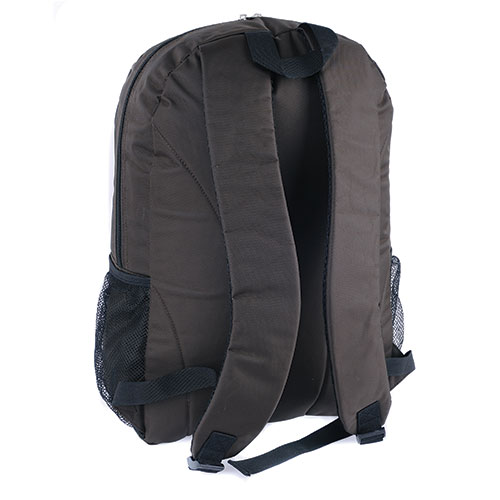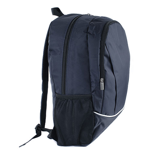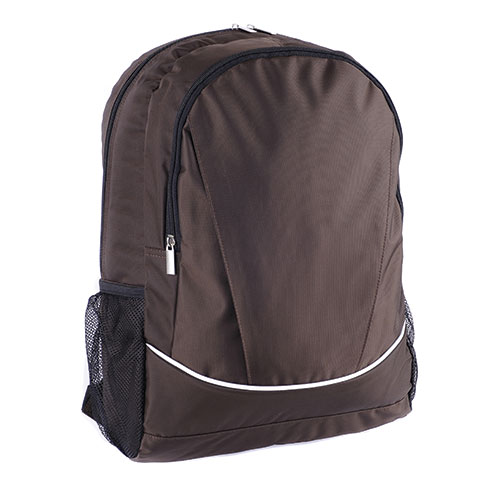 Mochila com bolsas de rede laterais.Polyester 600D/201D - Dimensões: 12,5x28x41,5 cm..