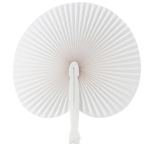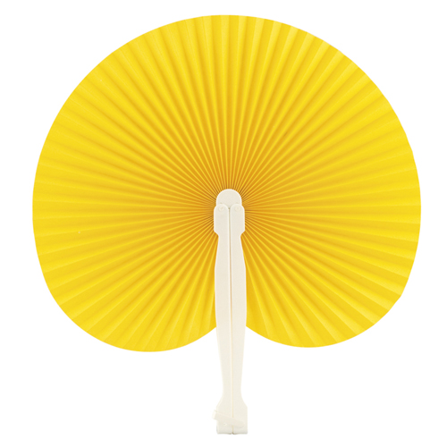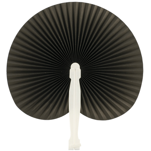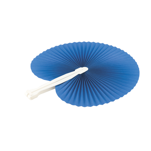 Ventilador feito de tecido resistente de poliéster 190T e hastes flexíveis de bambu. Inclui um cordã..
