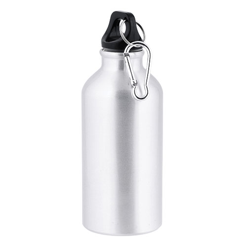 Garrafa em Aluminio 400ml com mosquetão.Dimensões: 17,5x6,5 cm..
