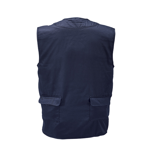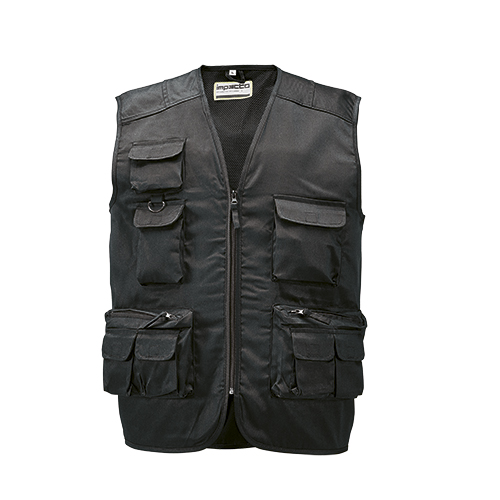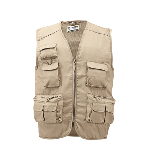 Colete unissex feito de tecido leve e respirável com interior feito de malha branca. Com zíper front..