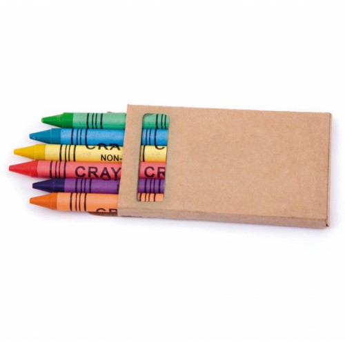 Caixa de 6 Lápis de Cor.- Cartolina e Madeira - Dimensões: 10,5x4,7x0,8 cm..