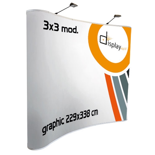 Pop Up Curvo - Magnético 3x3 módulos.- Tamanho: 277x229 cm (Frontal) / 338x229 (Total).- Mater..