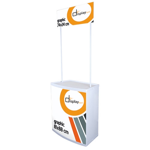 Balcão Promocional - Alumínio, madeira e ABS- Dimensões: 90x98 cm / 175x98 cm (gráfica)- Inclui..