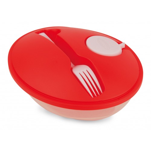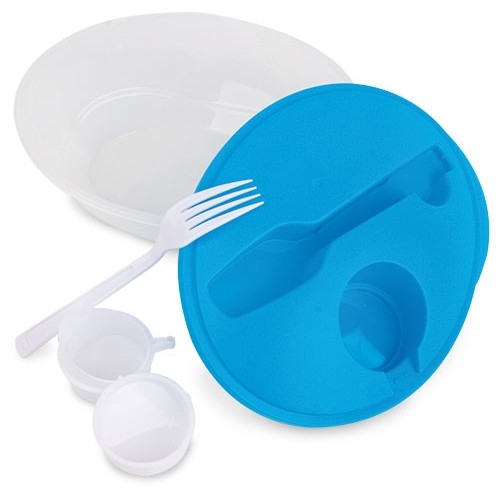 Caixa Plástica para comida + garfo e faca.Base: polipropileno Tampa : poliestireno - Dimensões: 22x1..